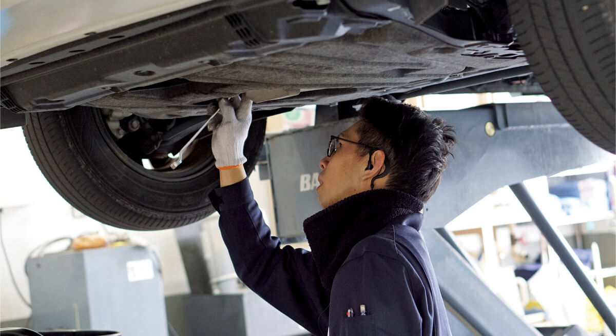 整備士という仕事は、車を愛し、車いじりが好きな人にはうってつけの職業だと思います。私が整備士として特にやりがいを感じるのは、難問を解決した瞬間です。例えば、謎の音鳴りの原因をようやく発見した時などには大きな達成感と喜びを感じます。そして、何よりも当社で車検をしてくださったお客様に安心してカーライフを楽しんでいただくことが私たち整備士の一番の願いです。