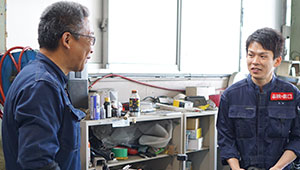 整備士には技術力だけでなく、お客様に整備内容をわかりやすくご説明する能力も必要です。ですから、お客様に対しては専門用語を使わず誰にでもわかりやすい言葉でご説明するように心がけています。整備の仕事はミスが許されないので日々緊張の連続ですが、スタッフ同士が助け合い、互いに作業を確認しあいながら確実な整備業務を行っています。