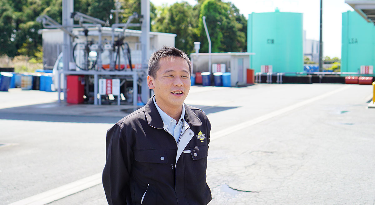 20歳で遠州日石に入社してはや13年が過ぎました。私は整備士の専門学校を卒業したので、入社当初は自動車整備の仕事を希望してサービスステーションに勤務し、5年前に商品技術部に配属されました。石油製品の販売は整備士の仕事とは全く畑違いの仕事だったので、最初は何もわからず戸惑うことばかりでしたが、上司に教わったり、現場で1つひとつ実体験を積みながら知識や技術を身につけてきました。JXエネルギー主催の研修会等に数多く参加させてもらえたことも大いに役立ちました。