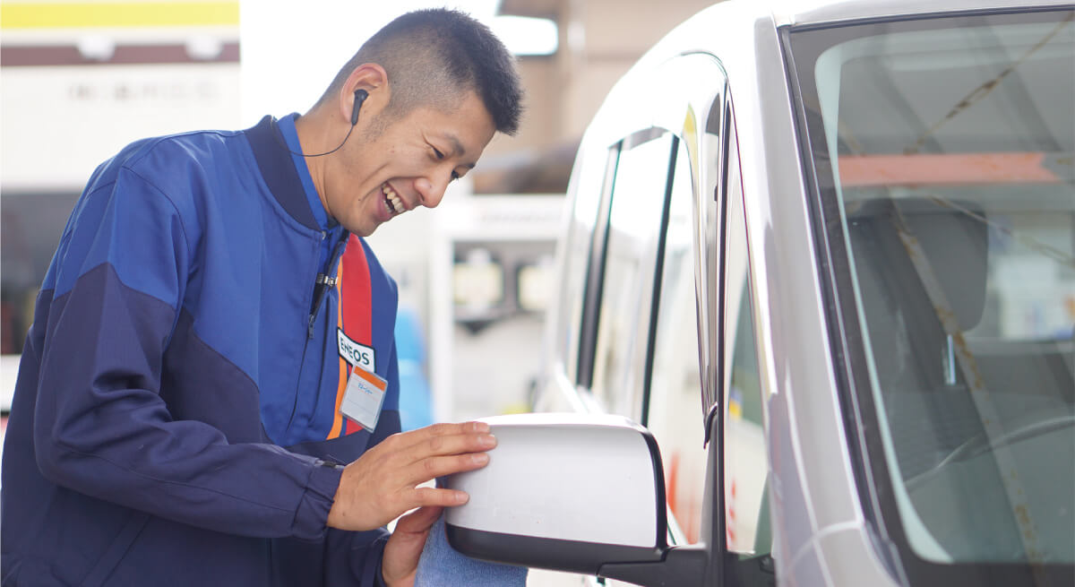 ガソリンスタンドは多種多様な車種が見られるので車好きにとっては特に楽しい職場だと思います。お客様との会話を通して車の乗り心地や性能などの情報も得られるし、その情報をお客様へのサービスに還元することもできます。いろんな車、いろんな人と出会えることが、この仕事の一番の魅力です。今後は整備士としてのスキルもさらに磨き、説明力も身につけて、お客様の嬉しそうな笑顔を見られる機会をもっともっと増やしていきたいと思います。